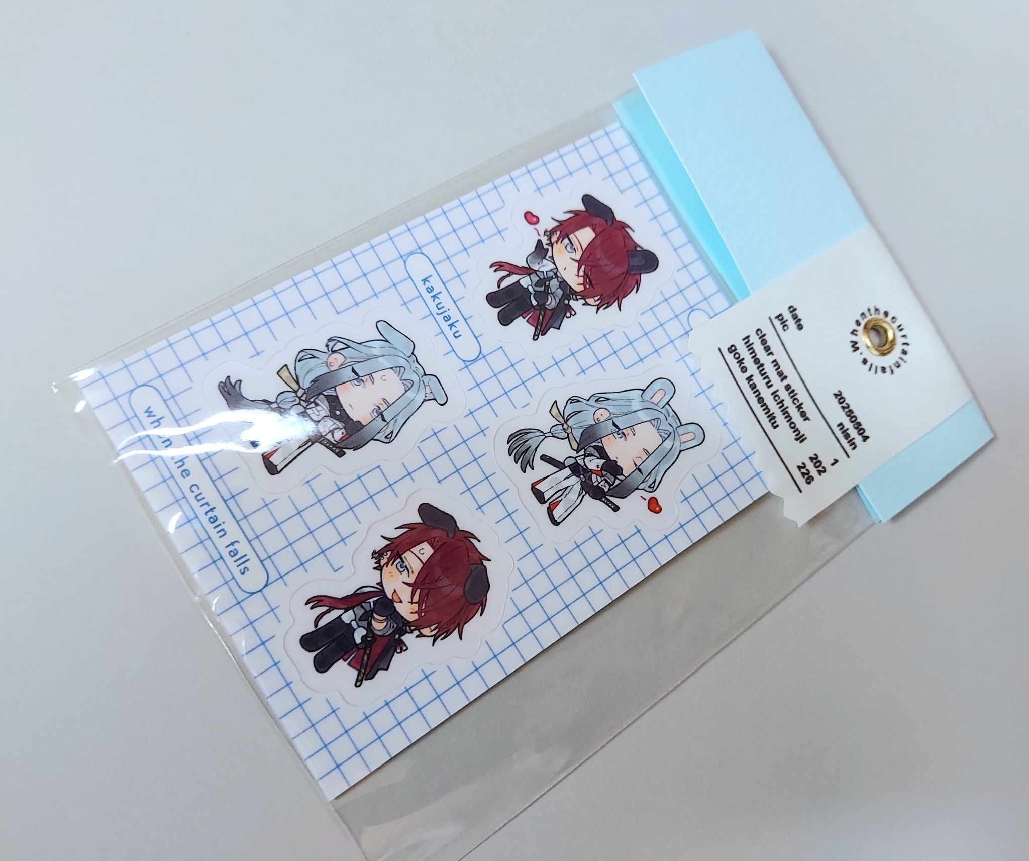当初フレークシール予定だったんだけどロット数勘違いしてたみたいで予算超えやらアホの数出来上がるやらで悩み、シートになりました。可愛いからこれはこれでいい気がします。
